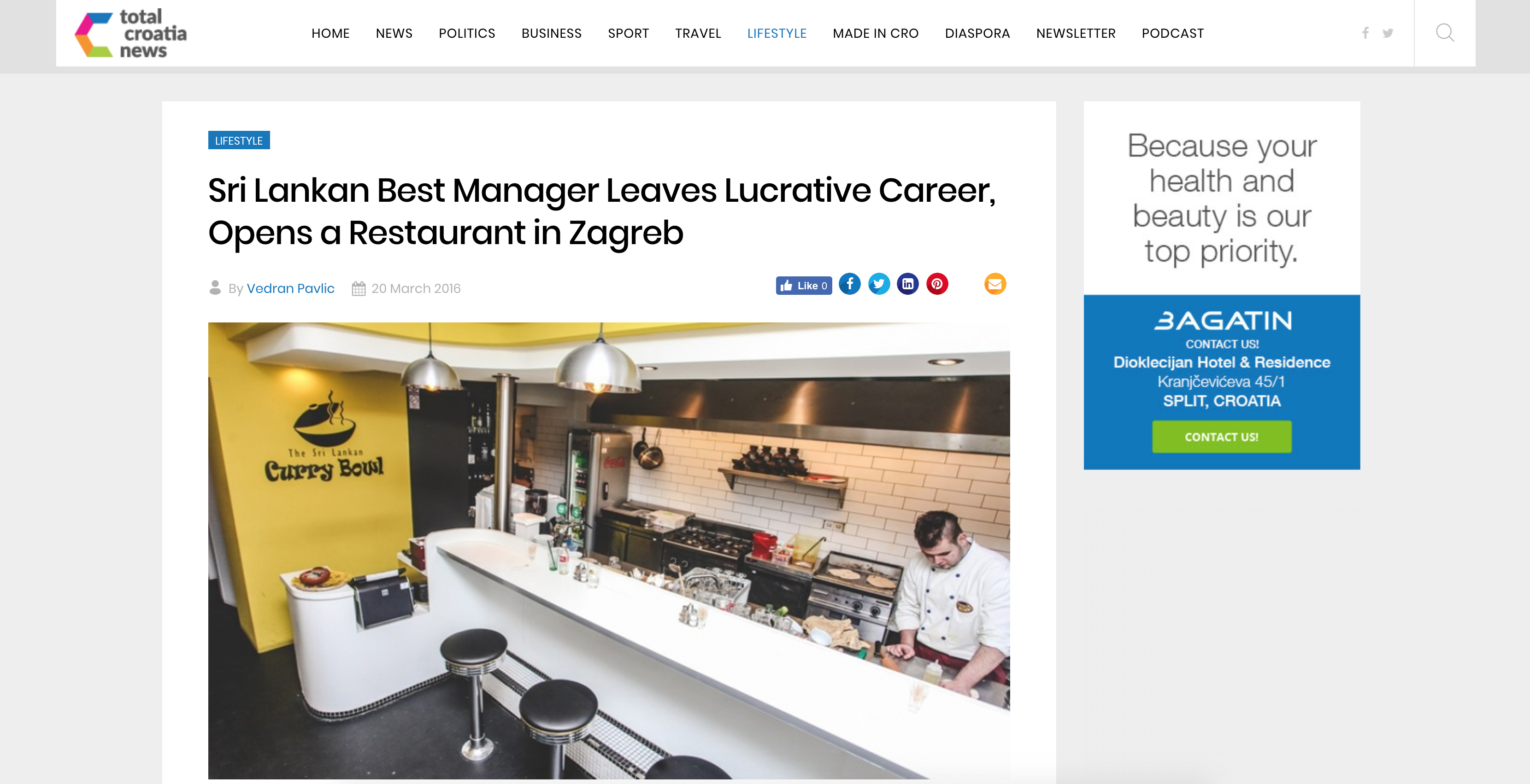 times, the first Curry Bowl Restaurant was opened in late 2015 in the Croatian capital Zagreb!